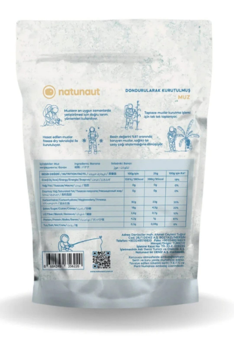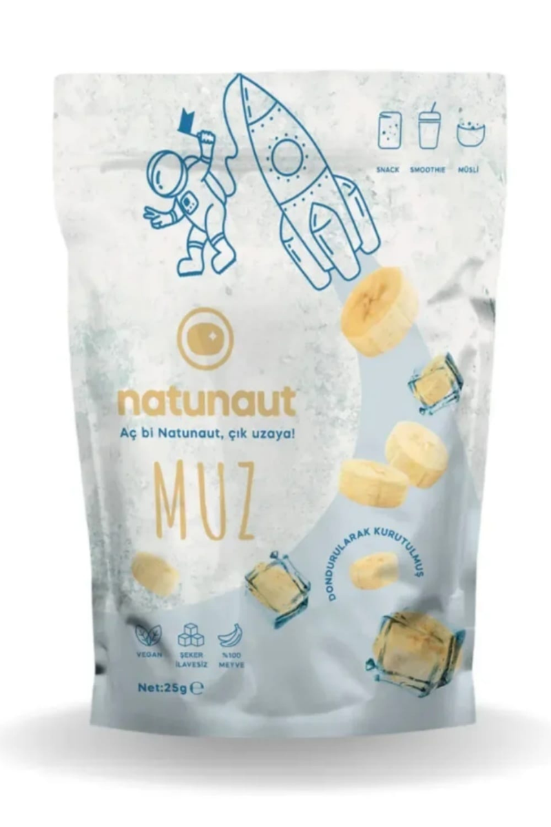 Ekstra şeker ve koruyucu içermeyen, gerçek muz tadını NATUNAUT ile yaşayın. NATUNAUT dondurularak kurutulmuş muz, doğal lezzetini ve besin değerini koruyarak size sunuluyor.